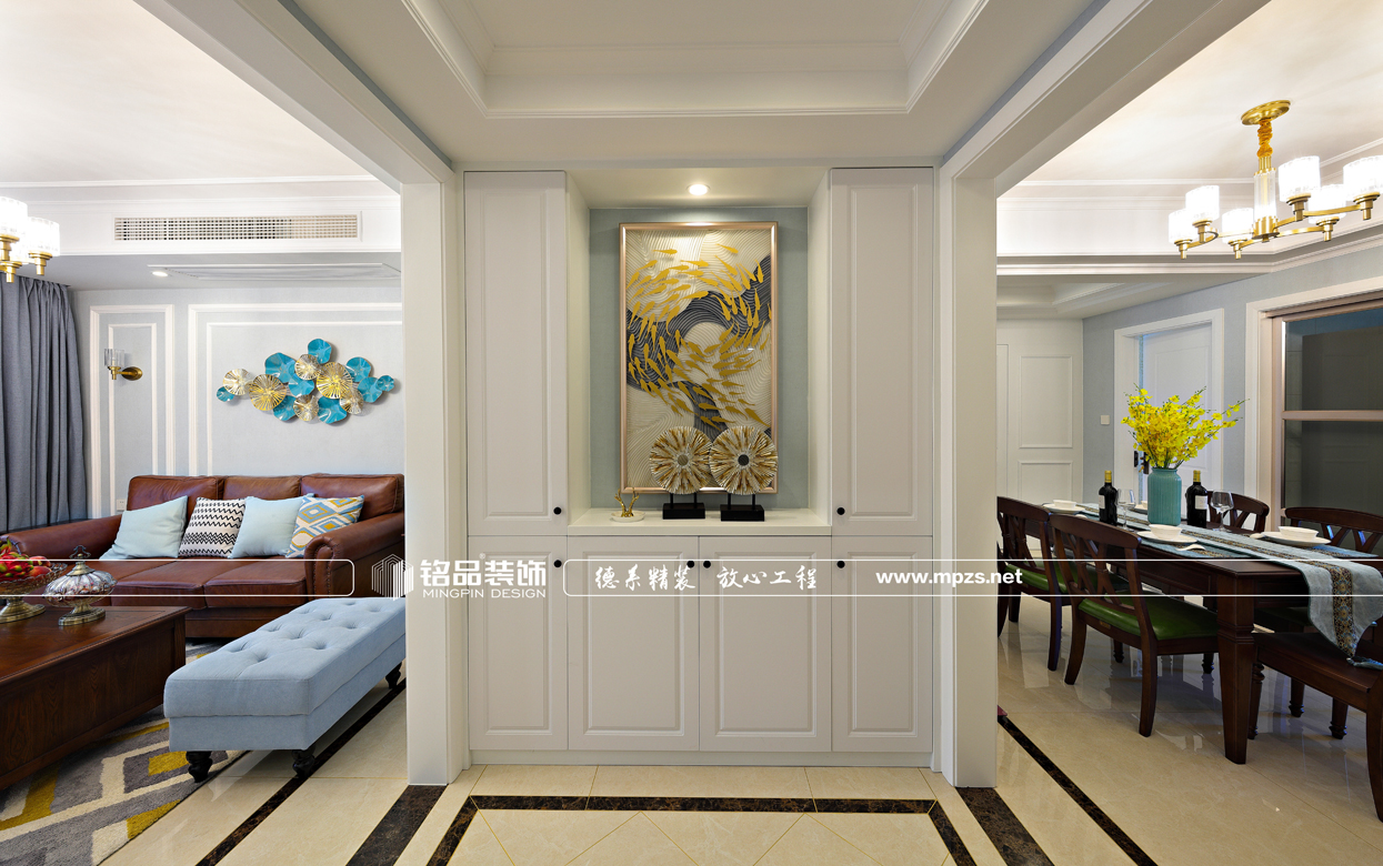 客戶自由職業(yè)者,簡(jiǎn)約不失大方,清爽不失情調(diào)。在原有直通的客餐廳之間,增加了衣帽間,做了玄關(guān),使進(jìn)門口多出一道亮點(diǎn),空間利用率更高。