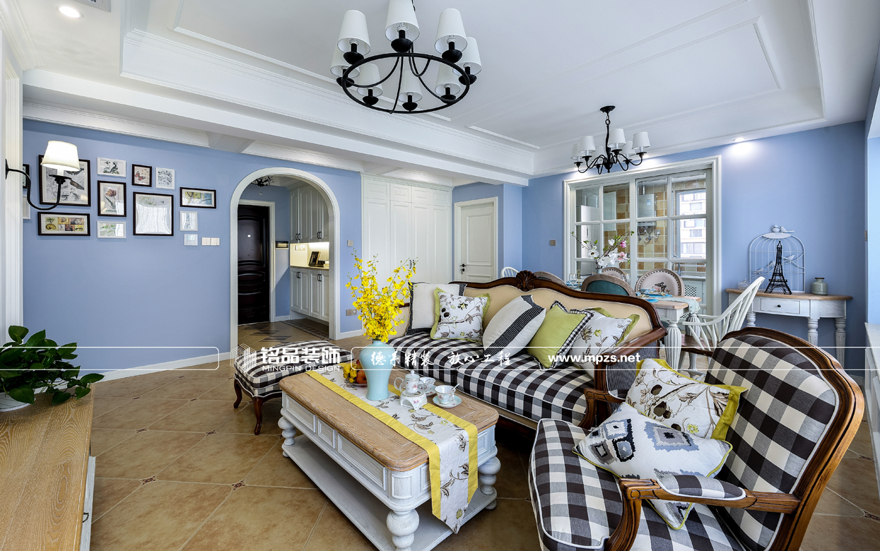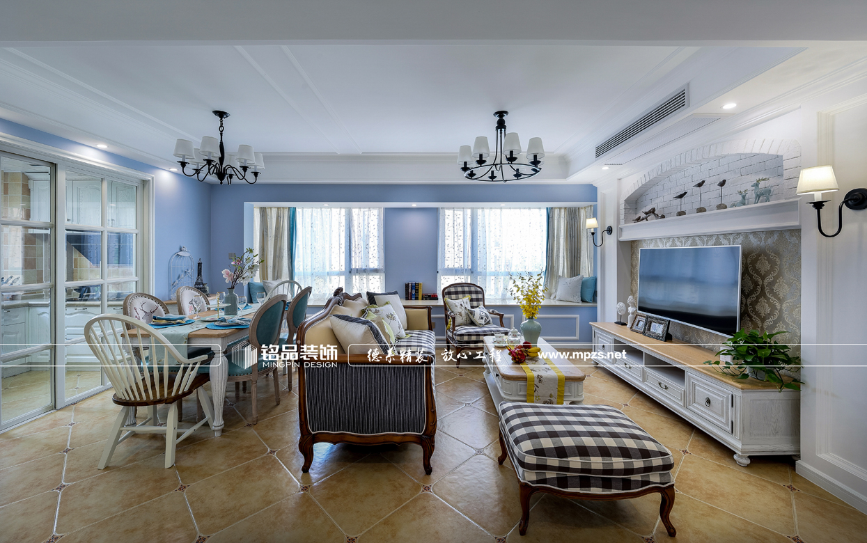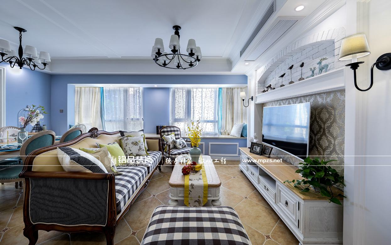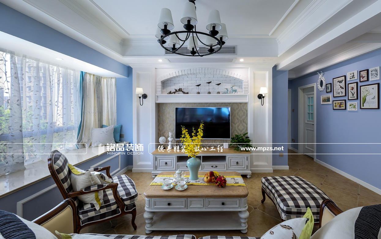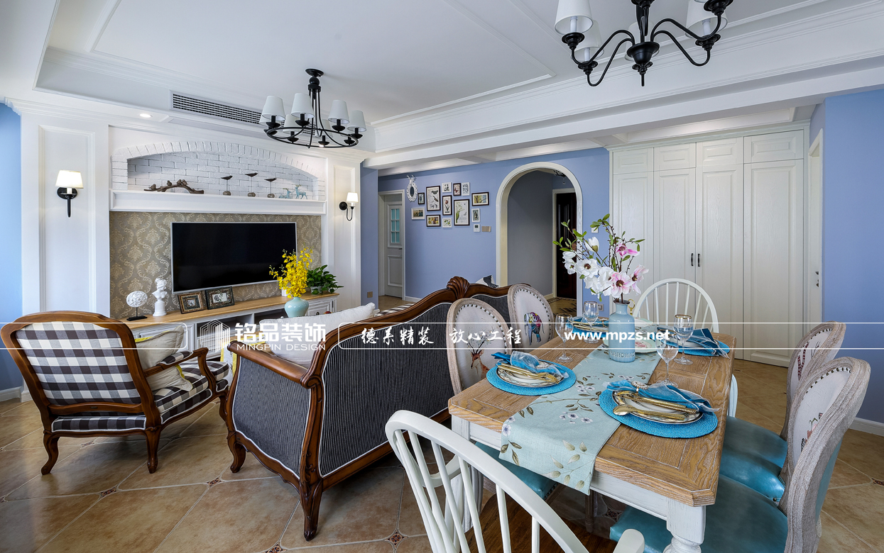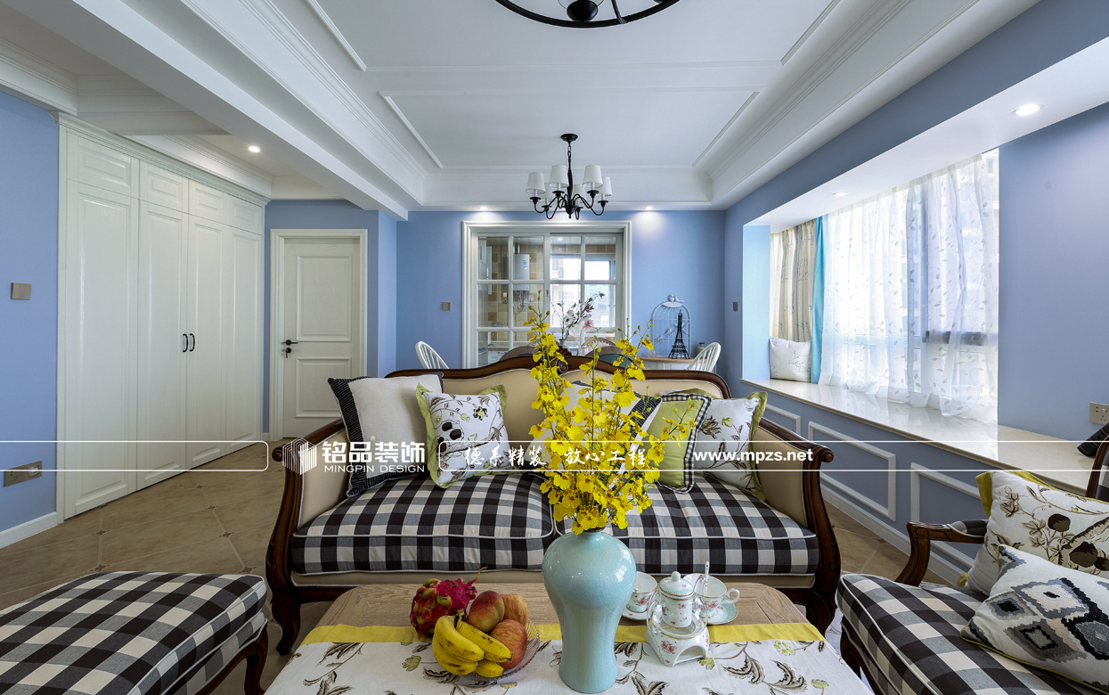 大面積使用了灰藍(lán)色的墻面,隔合了地中海的浪漫色彩,體現(xiàn)出了業(yè)主活躍的性格。原先通透的廳通過門洞的處理,既隔出了玄關(guān)又增加了亮點(diǎn),電視背景的處理,有了地中海的浪漫情結(jié),大飄窗的設(shè)計(jì)增加了客廳的視野空間。