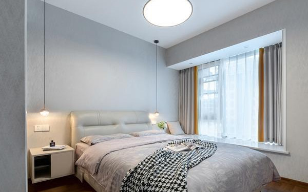 主臥吊燈設(shè)計與空間整體相搭,在簡約的基礎(chǔ)上更顯出精致與溫馨,看起來就很治愈,在這樣的氛圍里,躺上一天也舒適!