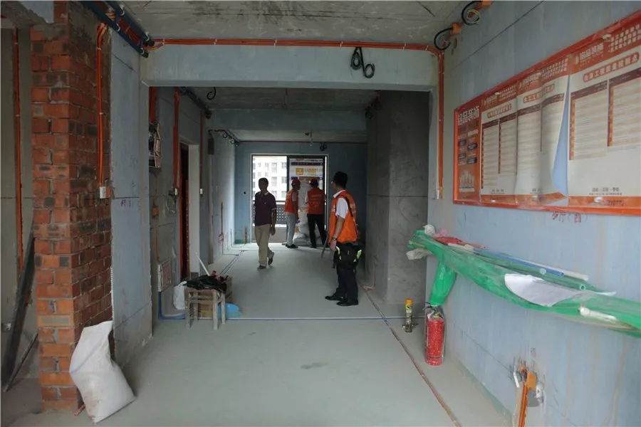 從入戶開始銘品就有嚴(yán)格標(biāo)準(zhǔn),入戶門、過道、墻面、地面必須做好保護(hù),防止運送材料過程對它們造成磕碰損傷。很顯然這一戶工地防護(hù)做的很到位,干凈又整潔,給工人師傅點贊。