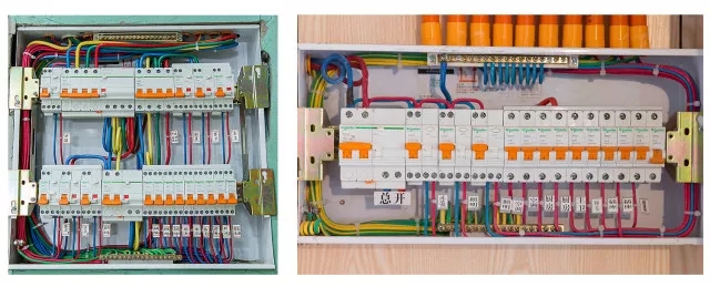 配電箱空氣開關(guān)設(shè)置應(yīng)與各用電回路的用電量來進(jìn)行計(jì)算并與線徑匹配;冰箱、易受潮的衛(wèi)生間(廚房)設(shè)備插座、大功率設(shè)備設(shè)置單獨(dú)回路并帶漏電保護(hù)器;空氣開關(guān)采用銅排連接;箱體有安全重復(fù)接地;導(dǎo)線分色纏繞;銅導(dǎo)體無裸露;各回路標(biāo)識(shí)清楚。