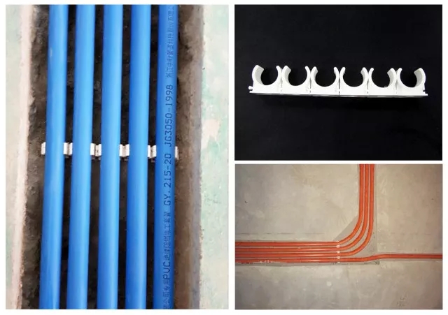 為確保槽內(nèi)線管后有足夠的砂漿能嵌入到槽內(nèi),首先要保證管與管間有合理的縫隙,采用組件排卡,是當(dāng)下的保證措施,且美觀效果。