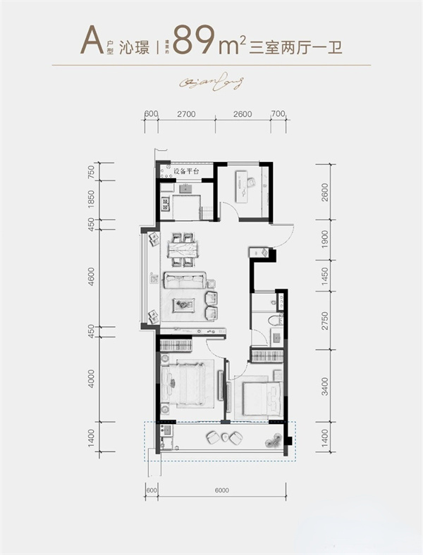A戶型/ 89㎡三室兩廳一衛(wèi)