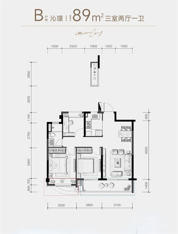 B戶型/ 89㎡三室兩廳一衛(wèi)