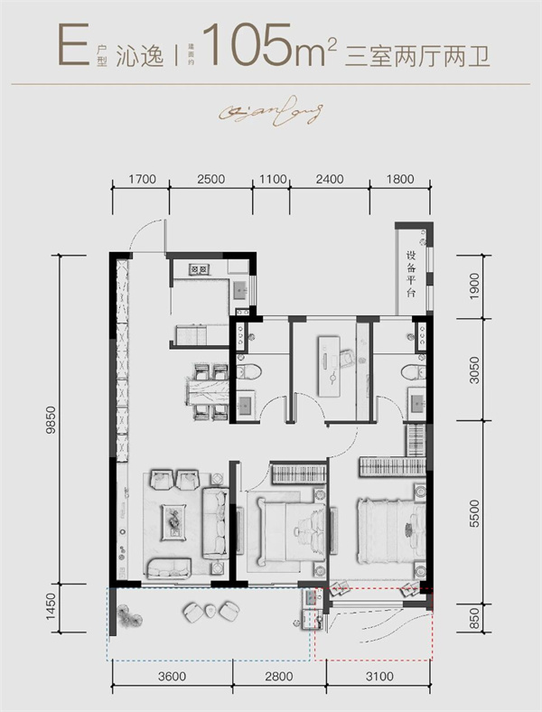 E戶型/105㎡三室兩廳兩衛(wèi)
