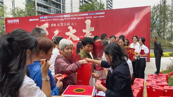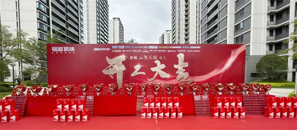 云璽天境小區(qū)入口處,一條璀璨的紅色地毯綿延展開(kāi),現(xiàn)場(chǎng)鮮花繽紛,禮炮齊鳴。每一位業(yè)主的臉上都洋溢著期待與喜悅,他們不僅是新家的主人,更是銘品裝飾品質(zhì)服務(wù)的見(jiàn)證者。