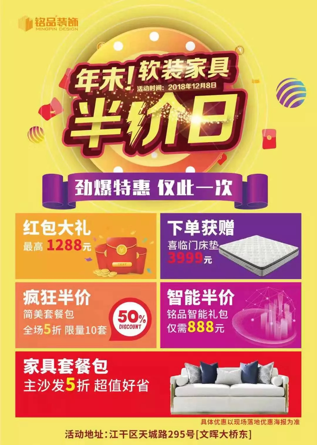 “銘品裝飾軟裝家具半價(jià)日”
