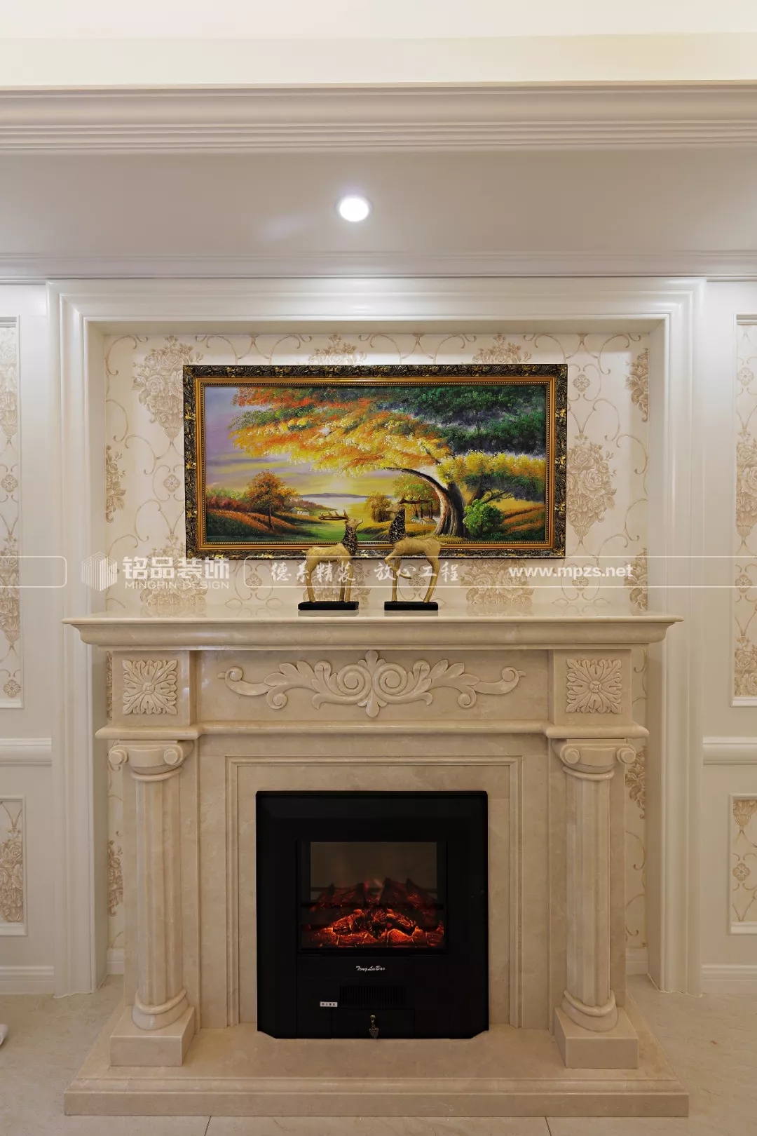 細(xì)節(jié)處的雕花、廊柱和壁畫等勾勒出精致和浪漫;溫暖的壁爐,看一眼就仿佛已將冬天的寒冷融化掉。