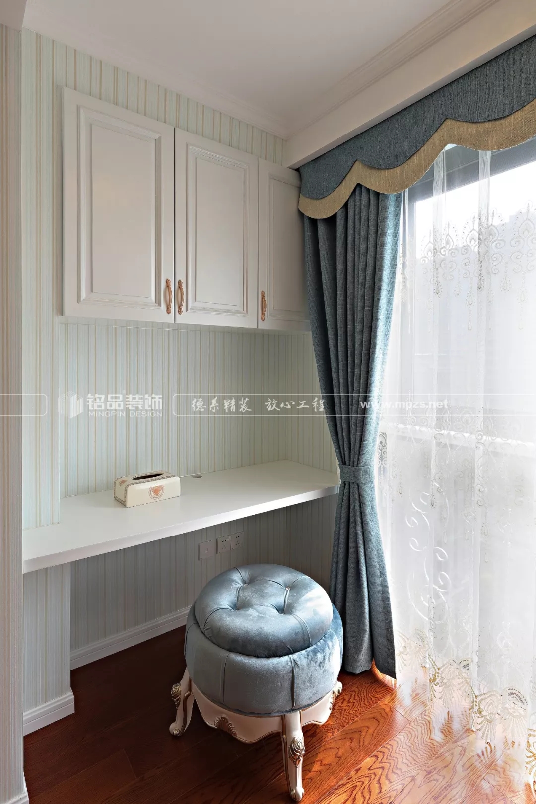 全屋家具中那一抹清淺的藍(lán)色雅調(diào),仿佛是夏日輕盈的風(fēng)穿堂而過,讓家在浪漫中多了一份溫暖的情懷~