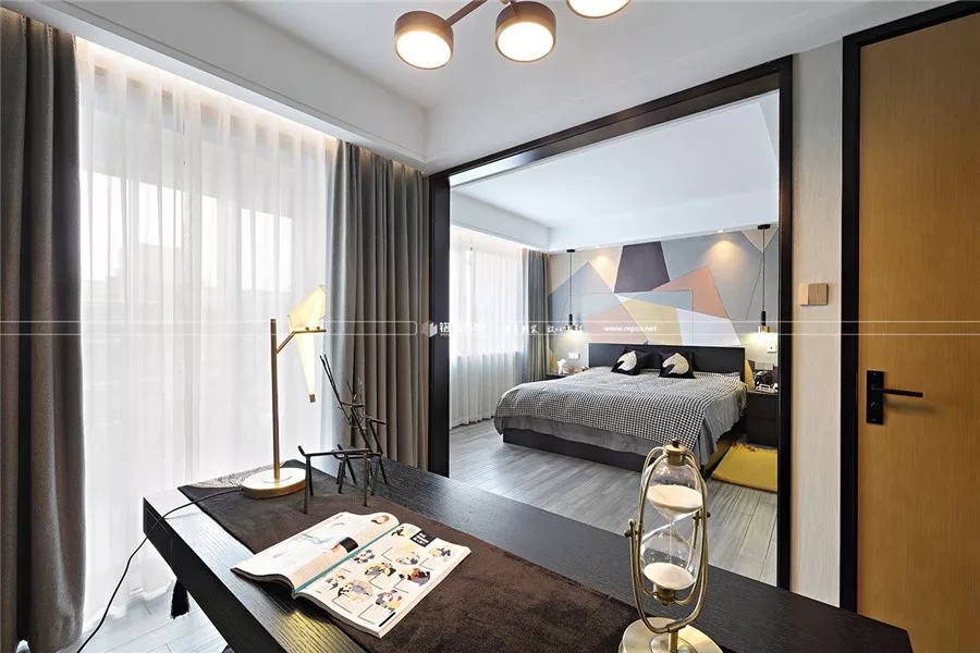 空間格局上書房臥室既獨立又入會貫通,使得年輕業(yè)主“休閑,居住,睡眠,工作,學(xué)習(xí)之間”能一氣呵成。