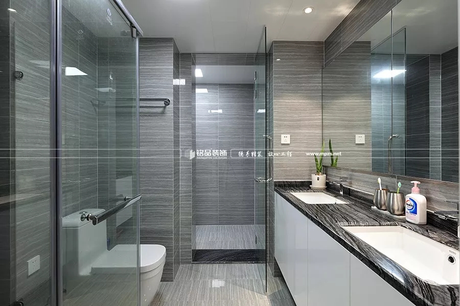 主衛(wèi)舒適寬敞,條紋大理石如水流般增添了動(dòng)感。