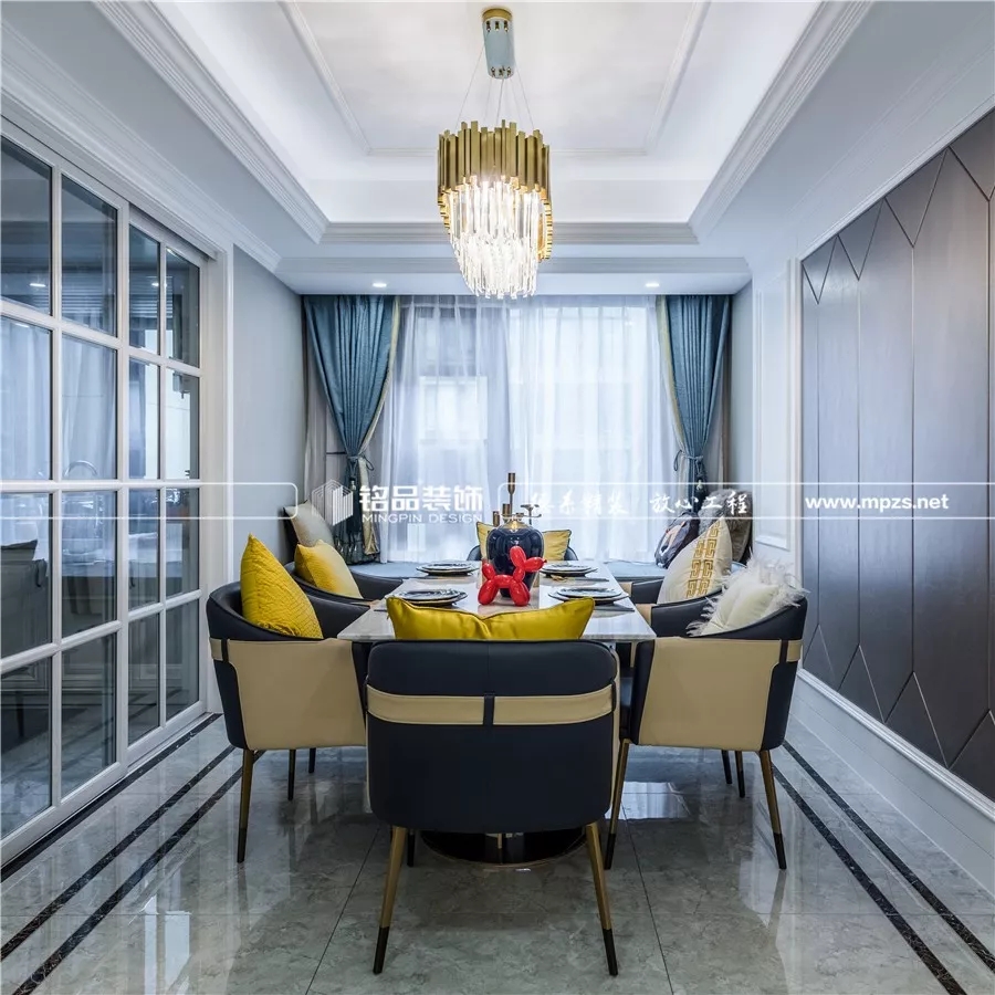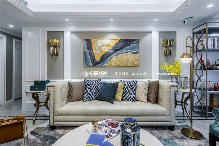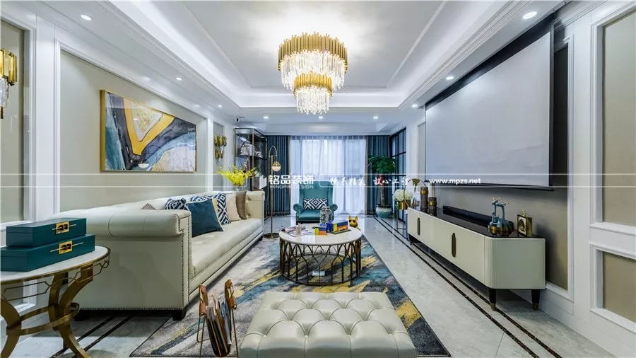 風格上,浪漫的美式作為基調(diào),輔以輕奢系列的家具和燈飾。