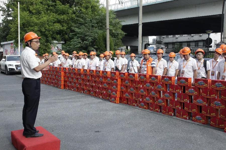 各大中心高中層,工程中心的總監(jiān)、巡檢等上百人組成二十支隊(duì)伍,正在進(jìn)行“工地送清涼”的活動(dòng)前的準(zhǔn)備工作,一箱箱王老吉、啤酒、以及解暑“補(bǔ)給包”內(nèi)含藿香正氣水等整整齊齊排好準(zhǔn)備裝車。