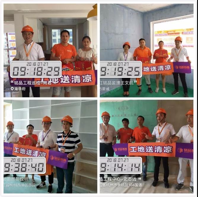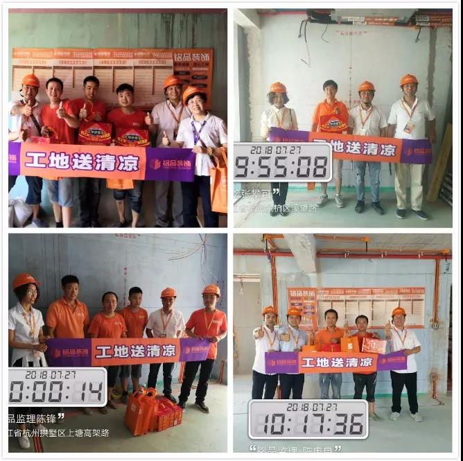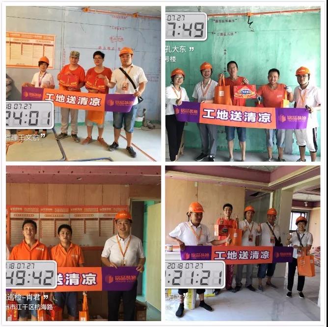 從杭州旗艦店開始,到全國(guó)48家分公司聯(lián)動(dòng),銘品裝飾集團(tuán)進(jìn)行了“工地送清涼”活動(dòng)。