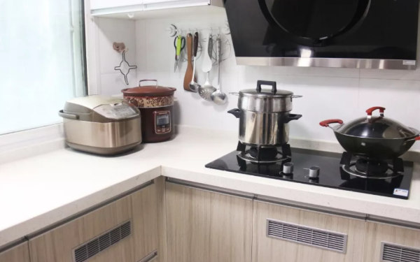 第三個就是在廚房預(yù)留出空間易安放后期添置的廚用電器,同時也要在相應(yīng)的位置提前布置電源插座,這個要選用防火、耐熱材質(zhì)的。廚房是用火用電多的地方,選用裝修材料首要考慮的就是安全因素。