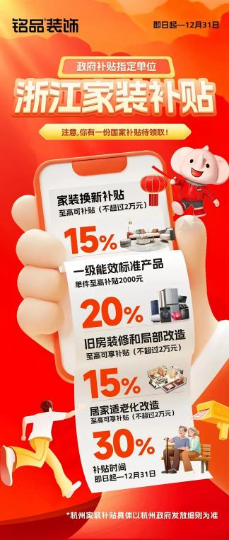 3月21日,杭州市2025年舊房裝修補(bǔ)貼工作全面啟動(dòng)以來,銘品裝飾積極響應(yīng)政府政策,制訂多項(xiàng)活動(dòng)優(yōu)惠,為符合條件的業(yè)主開具各類所需材料證明,力求讓廣大業(yè)主朋友在享受最大優(yōu)惠的條件下進(jìn)一步更快獲得政府的裝修補(bǔ)貼款。截至4月16日,已有6200多戶業(yè)主申請了舊房裝修補(bǔ)貼,政策福利正惠及杭州千家萬戶,其中不少業(yè)主在杭州銘品裝修的業(yè)主都拿到了首批舊房裝修補(bǔ)貼款。