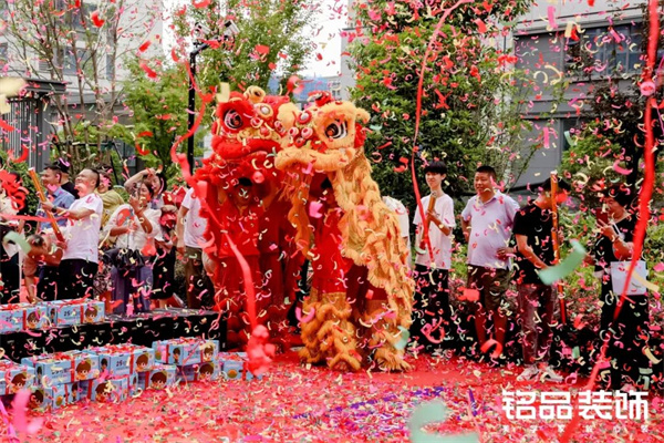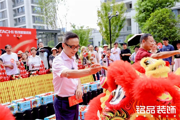 銘品裝飾張一良董事長、杭州電視臺驗房師大梁師傅、銘品杭州大區(qū)總經(jīng)理呂斌先生以及千年舟集團副總經(jīng)理陸欣悅女士共同為祥獅點睛,賦予了其生命與活力,寓意著吉祥如意、興旺發(fā)達(dá)。