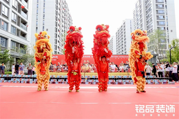 祥獅與業(yè)主朋友們親密互動,將采到的寓意“生財”的生菜送到業(yè)主手中,為業(yè)主們送去美好的祝福,將現(xiàn)場氣氛烘托到了高潮。
