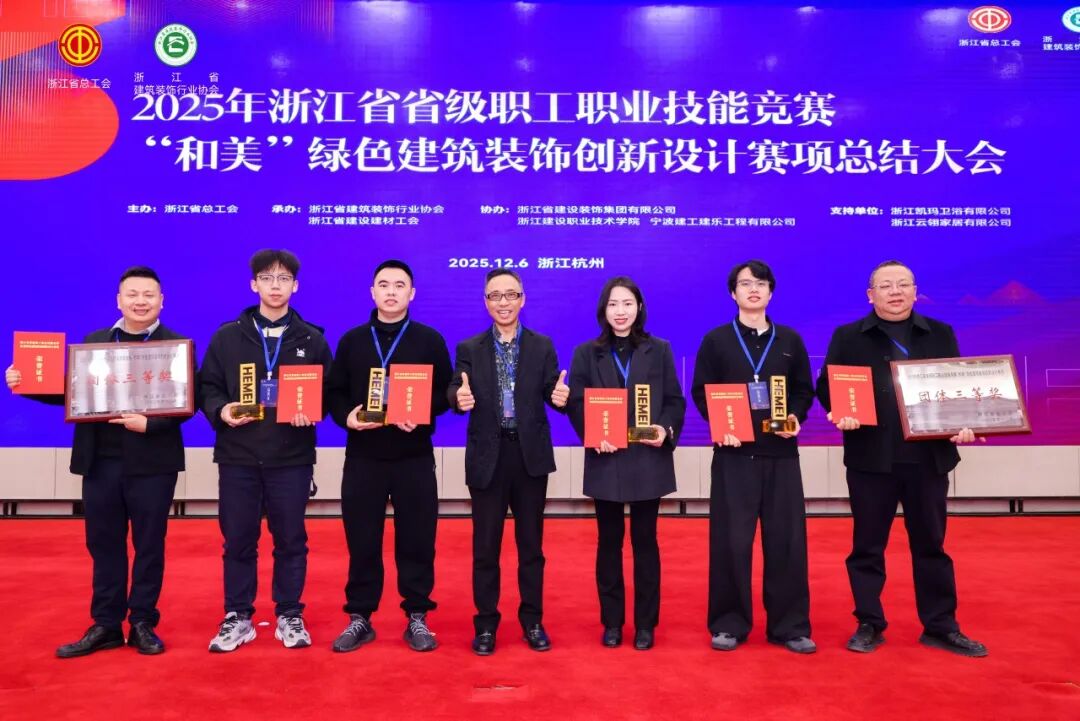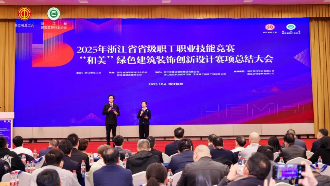2025年12月6日,浙江省省級(jí)職工職業(yè)技能競(jìng)賽“和美”綠色建筑裝飾創(chuàng)新設(shè)計(jì)賽項(xiàng)總結(jié)大會(huì)在杭州盛大召開。本次大會(huì)匯聚了全省建筑裝飾行業(yè)的頂尖設(shè)計(jì)師、領(lǐng)軍企業(yè)代表、知名專家學(xué)者及主流權(quán)威媒體,共同圍繞行業(yè)發(fā)展趨勢(shì)展開深入探討,分享前沿創(chuàng)新成果。