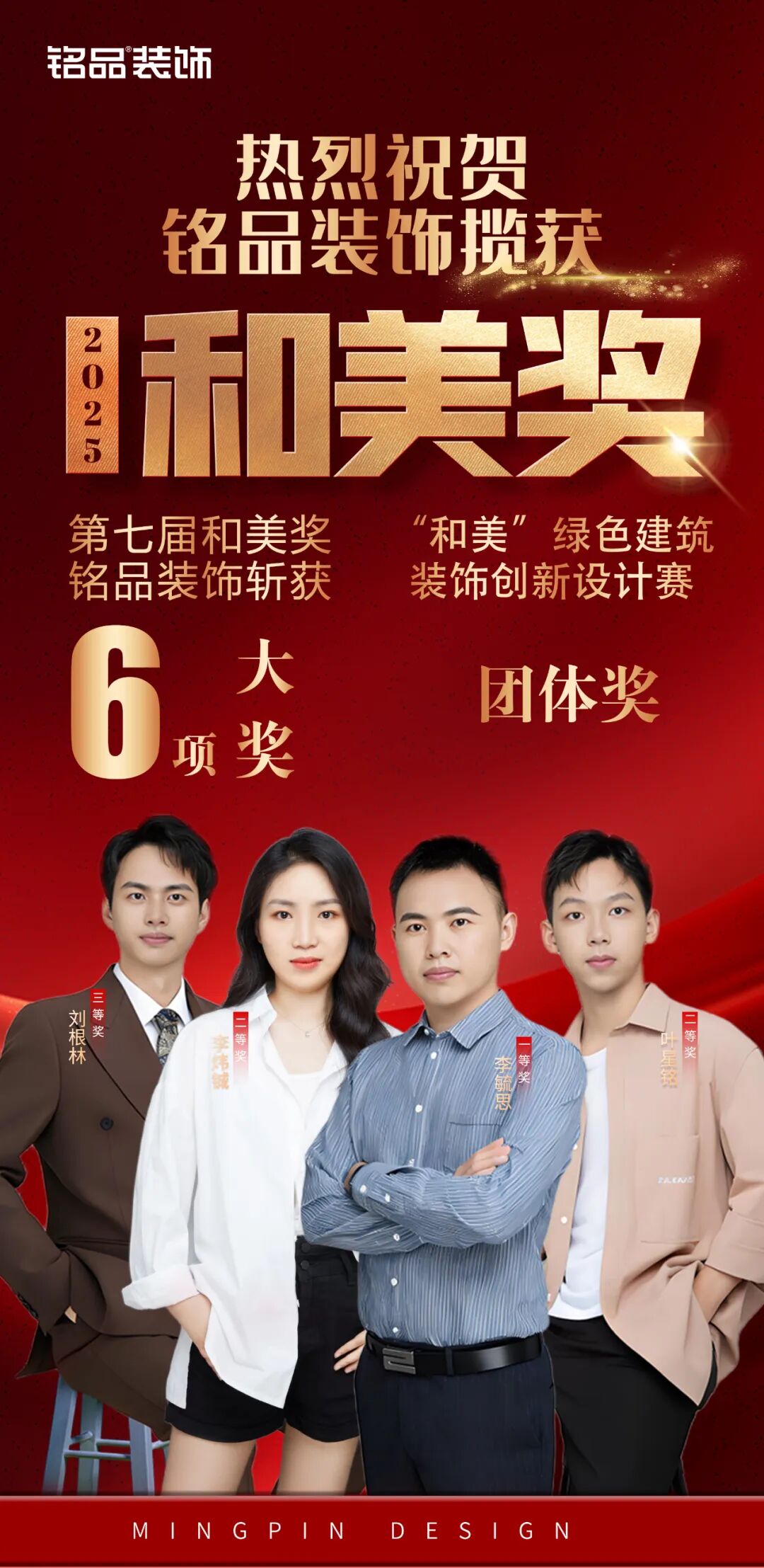 會(huì)上正式公布了2025 年“和美”綠色建筑裝飾創(chuàng)新設(shè)計(jì)賽項(xiàng)競(jìng)賽的獲獎(jiǎng)名單,該賽事作為行業(yè)權(quán)威認(rèn)證的高水平競(jìng)賽,吸引了上千份優(yōu)秀作品參與角逐。銘品裝飾憑借卓越的設(shè)計(jì)實(shí)力與鮮明的創(chuàng)新理念,在激烈競(jìng)爭(zhēng)中脫穎而出,共榮膺六項(xiàng)大獎(jiǎng),其中包括四項(xiàng)設(shè)計(jì)類獎(jiǎng)項(xiàng)和兩項(xiàng)團(tuán)體獎(jiǎng),成為全場(chǎng)獲獎(jiǎng)最多、覆蓋最全的企業(yè)!再次彰顯了銘品在家裝設(shè)計(jì)領(lǐng)域的深厚積淀與標(biāo)桿地位!