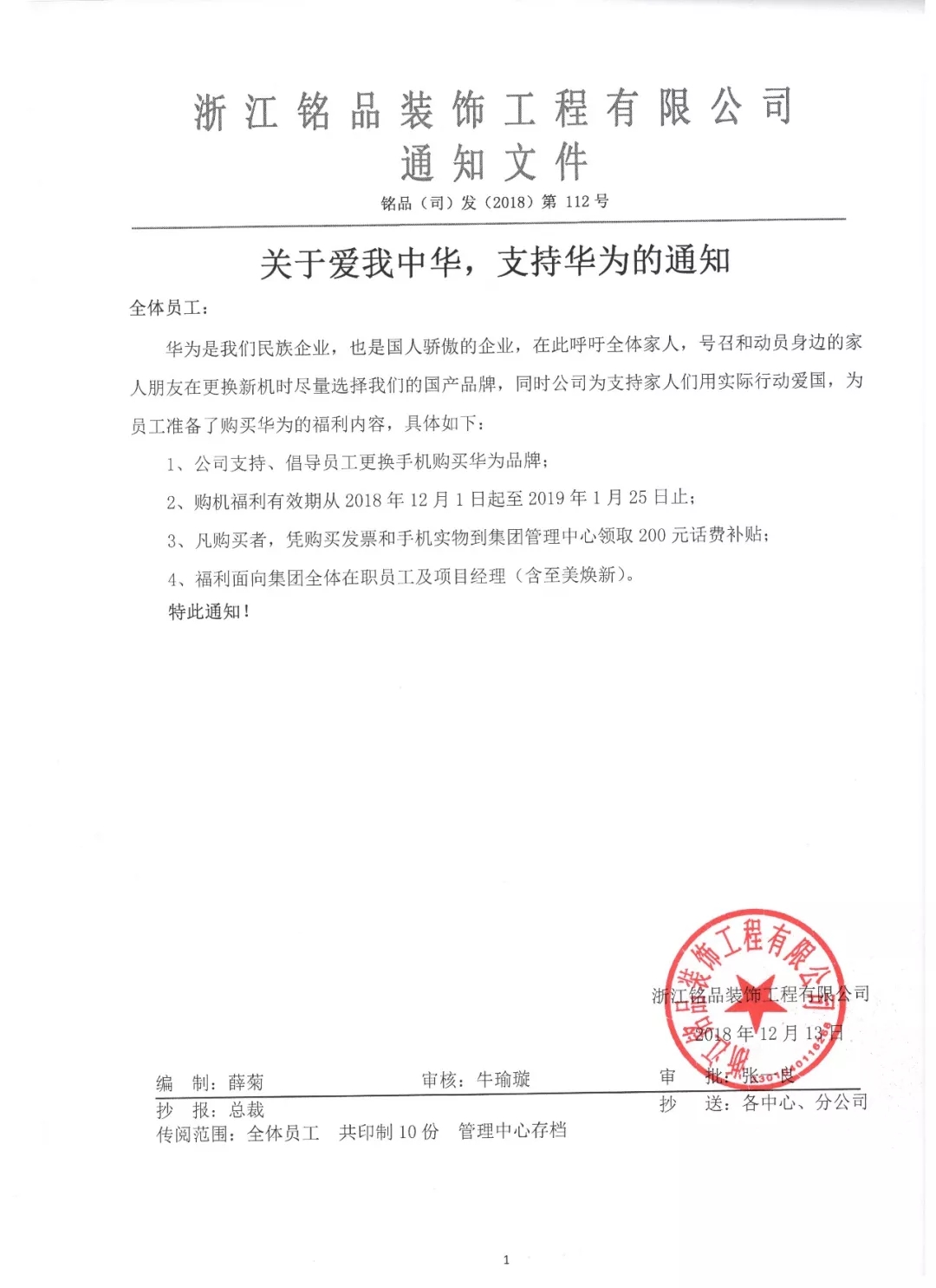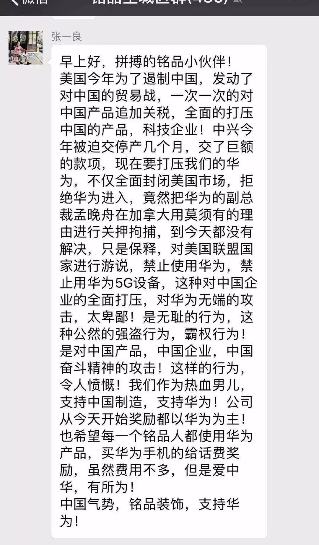 銘品裝飾董事長張一良用實(shí)際行動(dòng)為華為發(fā)聲,