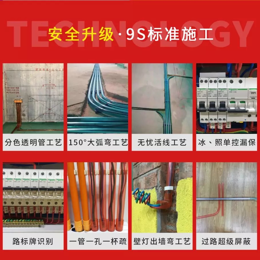 從行業(yè)標(biāo)準(zhǔn)《白皮書》、25°全屋裝、銘品智能、60余項(xiàng)專利技術(shù)到近期廣受好評(píng)的透明線管工藝和9S標(biāo)準(zhǔn)工藝,