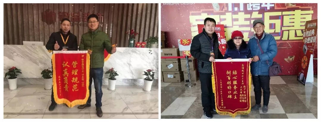 臨近年終,銘品裝飾各部門與以往一樣,又迎來(lái)了“扎堆”收獲錦旗的場(chǎng)面。