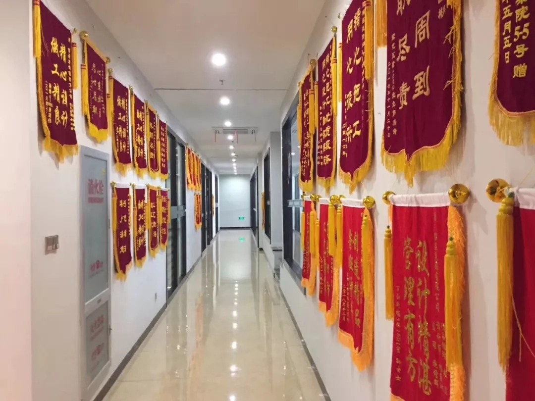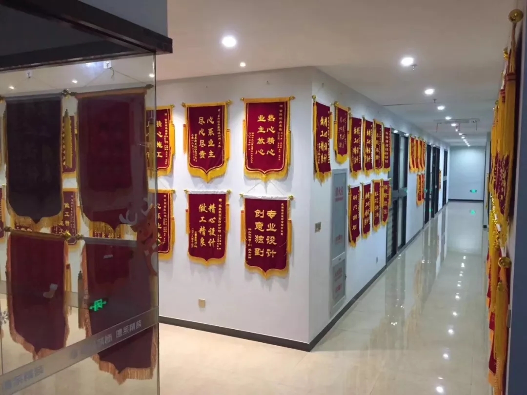 走進(jìn)銘品裝飾,你會(huì)看到,走廊兩側(cè)宣傳欄貼滿了大大小小的感謝信、表?yè)P(yáng)信和錦旗,整整齊齊、耀眼奪目。